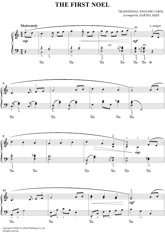Digital Sheet Music for The First Noel by Traditional English Carol, Martha Mier scored for Piano; id:462944