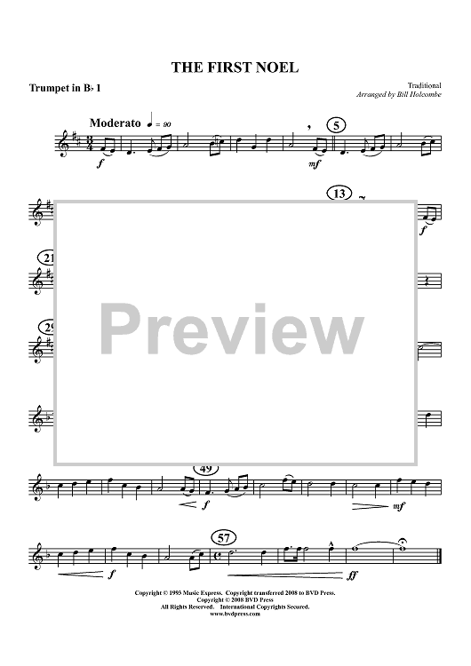 Digital Sheet Music for The First Noel - Trumpet 1 by , Traditional, Bill Holcombe scored for Brass Quintet; id:411765
