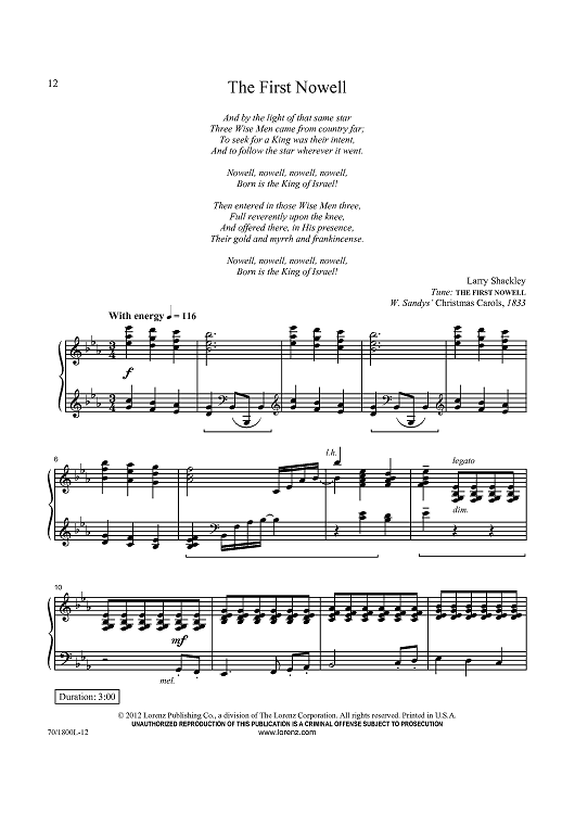 Digital Sheet Music for The First Nowell by Unknown, Larry Shackley scored for Piano Solo; id:435239