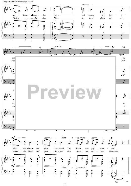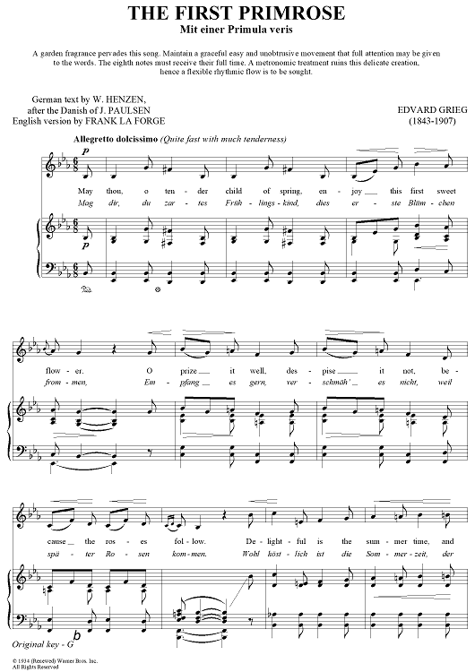 "The First Primrose" Sheet Music by Edvard Grieg