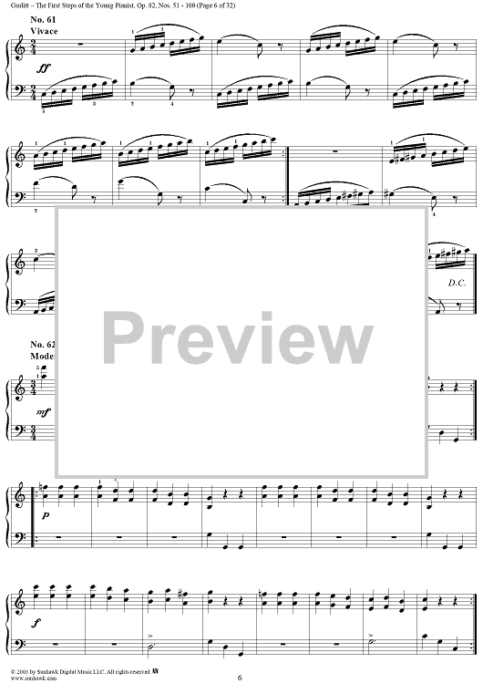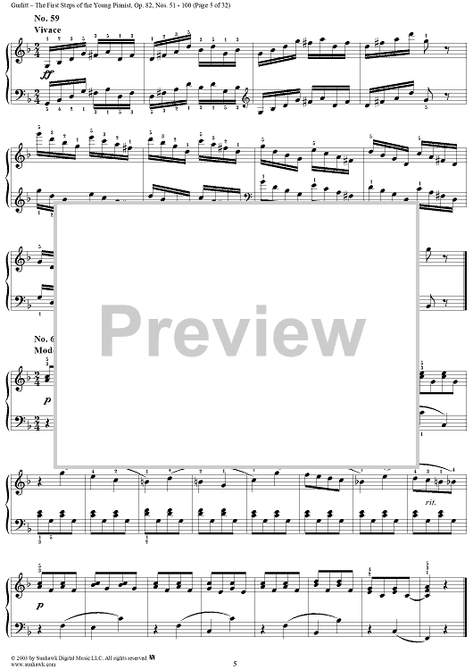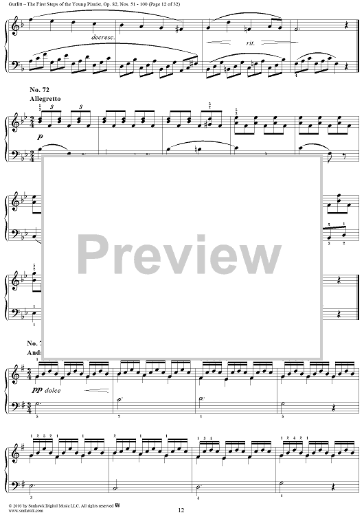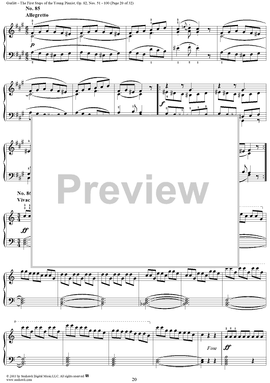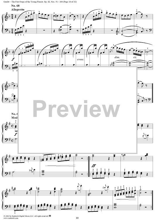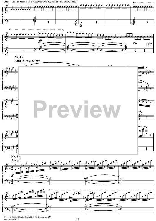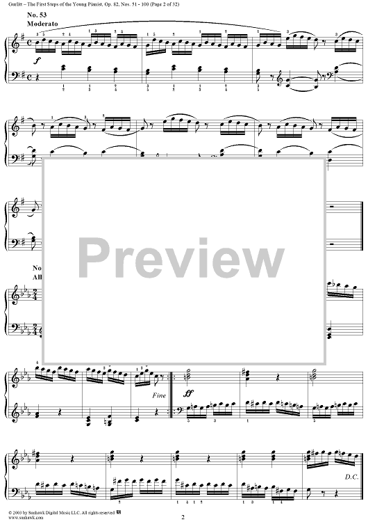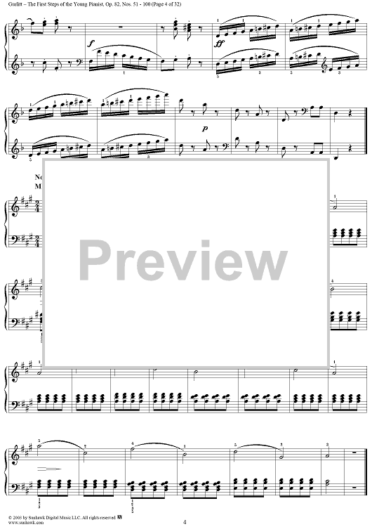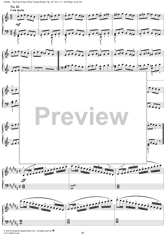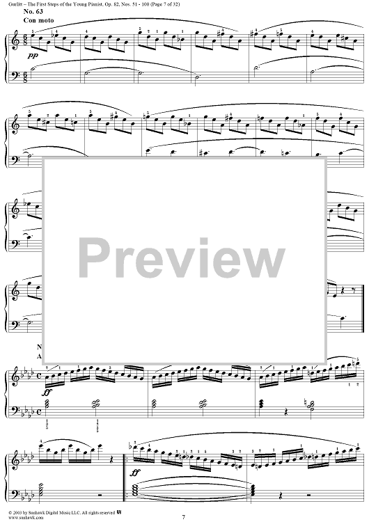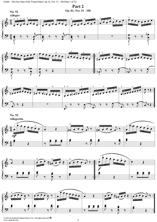 Digital Sheet Music for The First Steps of the Young Pianist, Op. 82, Part 2, Nos. 51 - 100 by Cornelius Gurlitt scored for Piano Solo; id:294883