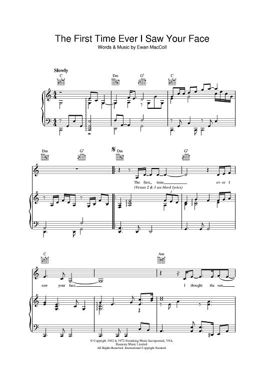 Digital Sheet Music for The First Time Ever I Saw Your Face by Johnny Cash, Roberta Flack scored for Piano/Vocal/Chords; id:393292