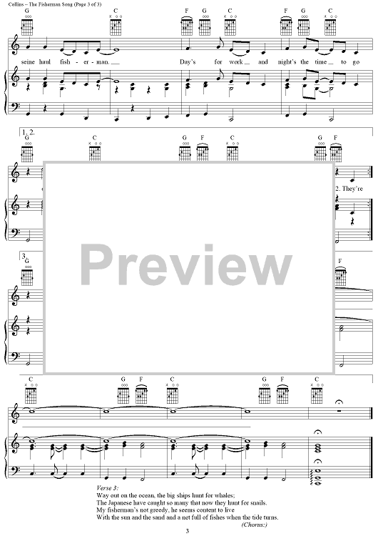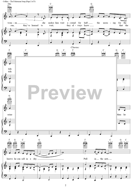 Digital Sheet Music for The Fisherman Song by Judy Collins scored for Piano/Vocal/Chords; id:285943