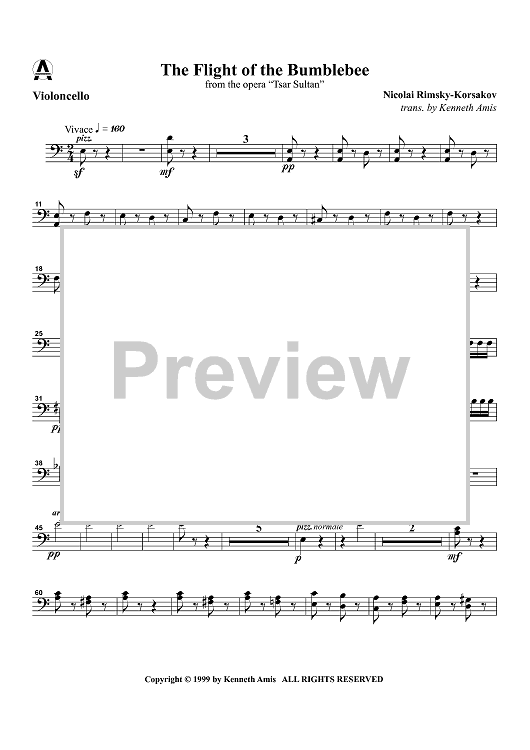 "The Flight of the Bumblebee from the opera "Tsar Sultan" - Cello" Sheet Music by Nikolai Rimsky-Korsakov