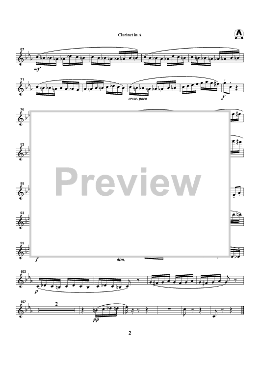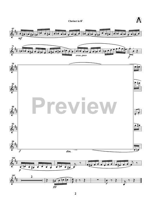 Instrumentation: Flute, Clarinet (Bb and A parts included), xylophone, 2 Violins, viola, cello, bass