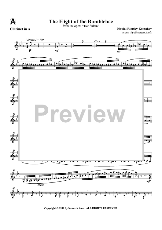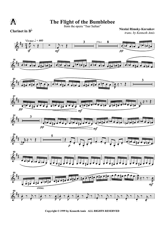 "The Flight of the Bumblebee from the opera "Tsar Sultan" - Clarinet in A/B-flat" Sheet Music by Nikolai Rimsky-Korsakov