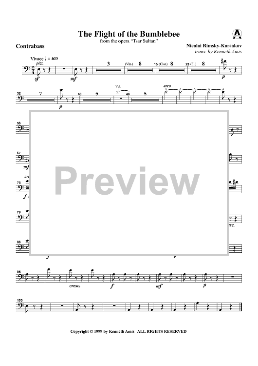 "The Flight of the Bumblebee from the opera "Tsar Sultan" - Double Bass" Sheet Music by Nikolai Rimsky-Korsakov