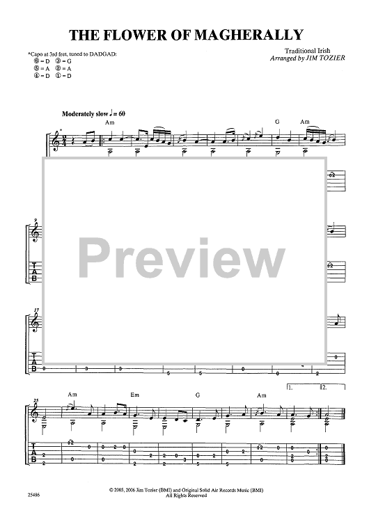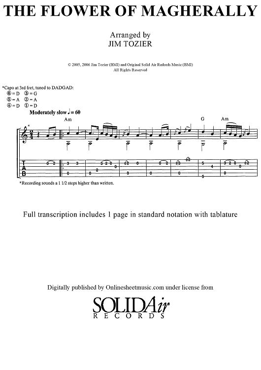 Digital Sheet Music for The Flower of McGherally (With Embedded Audio) by Traditional Irish Melody, Jim Tozier scored for Guitar Tab; id:451632