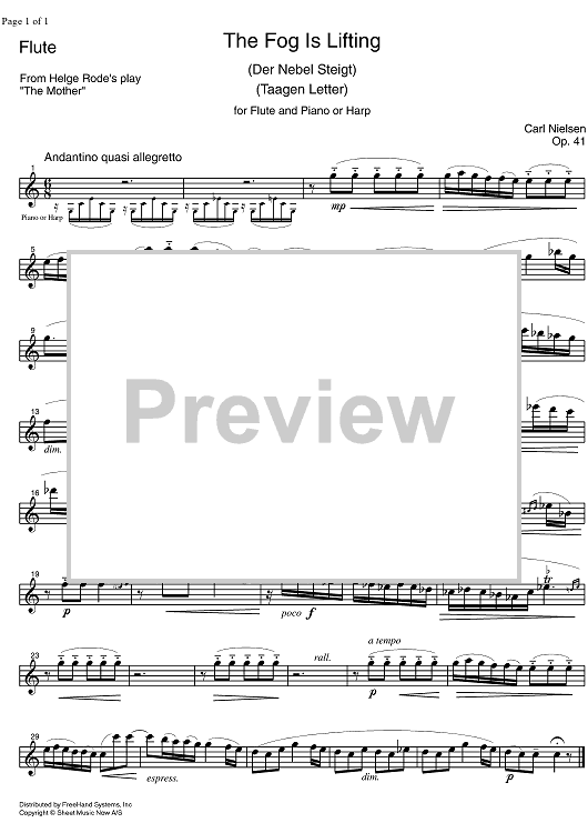 Digital Sheet Music for The Fog is Lifting - Flute by SMN Archive Collection, Carl Nielsen scored for Flute/Piano or Harp; id:325211