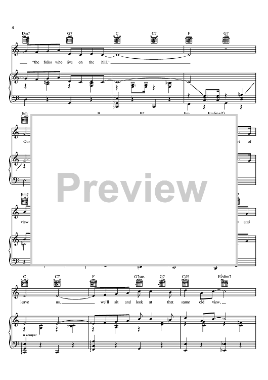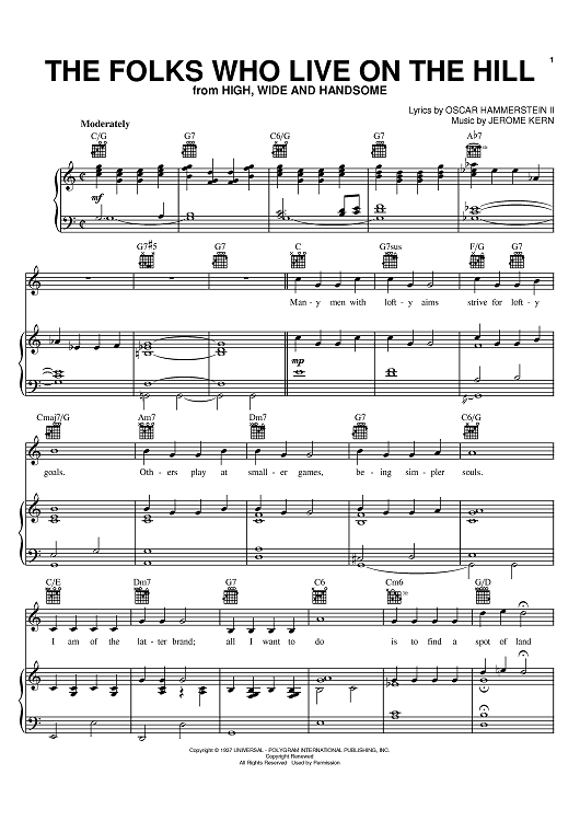 Digital Sheet Music for The Folks Who Live On The Hill by Bing Crosby, Ahmad Jamal, Jerome Kern, Oscar Hammerstein II, Mel Torme, Peggy Lee scored for Piano/Vocal/Chords; id:381446