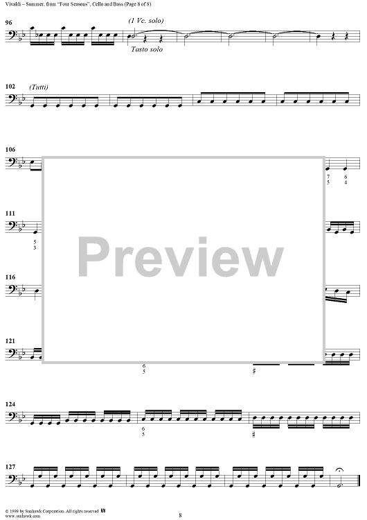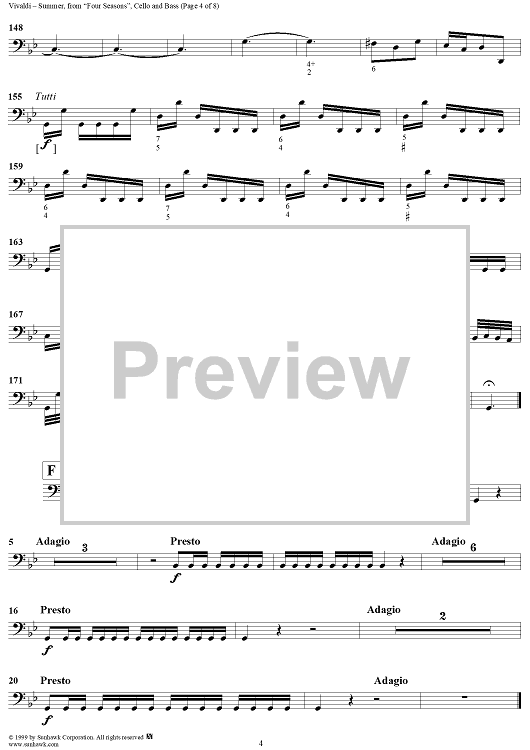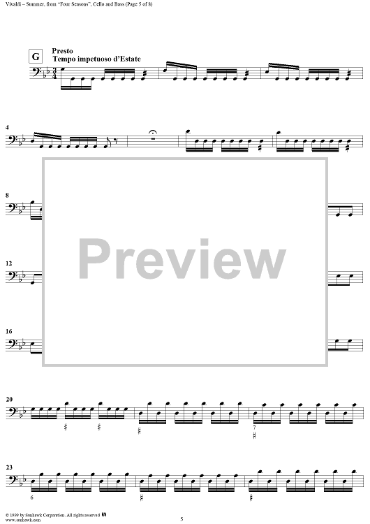 "The Four Seasons, No. 2: Summer - Cello/Bass" Sheet Music by Antonio Vivaldi