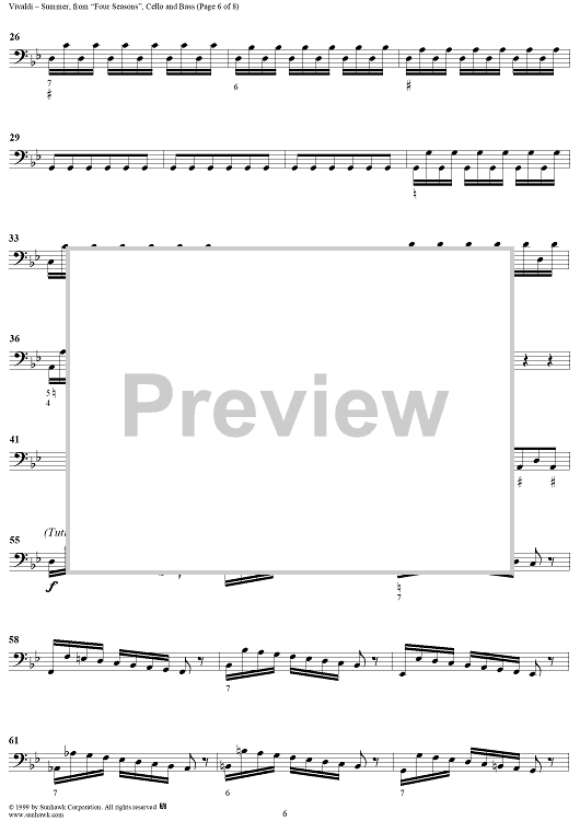 Digital Sheet Music for The Four Seasons, No. 2: Summer - Cello/Bass by Antonio Vivaldi scored for Violin and String Orchestra; id:310636