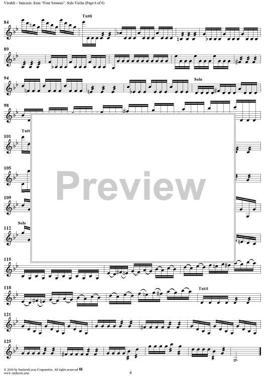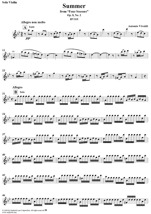 "The Four Seasons, no. 2: Summer - Solo Violin" Sheet Music by Antonio Vivaldi