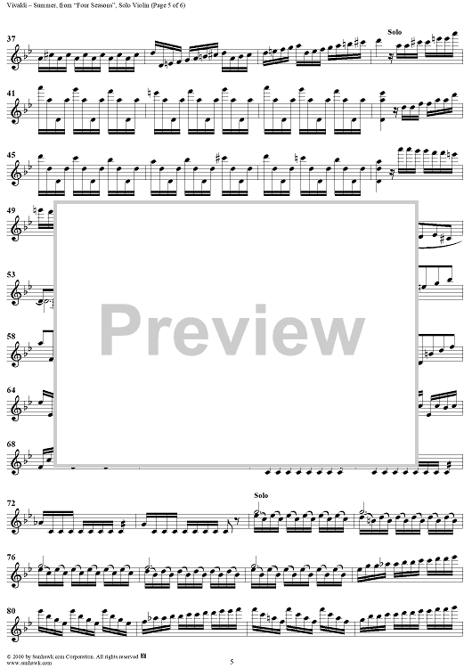 Digital Sheet Music for The Four Seasons, no. 2: Summer - Solo Violin by Antonio Vivaldi scored for Violin and String Orchestra; id:203819