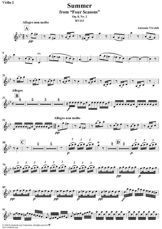 "The Four Seasons, no. 2: Summer - Violin 2" Sheet Music by Antonio Vivaldi