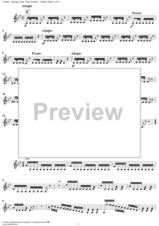 Digital Sheet Music for The Four Seasons, no. 2: Summer - Violin 2 by Antonio Vivaldi scored for Violin and String Orchestra; id:203815