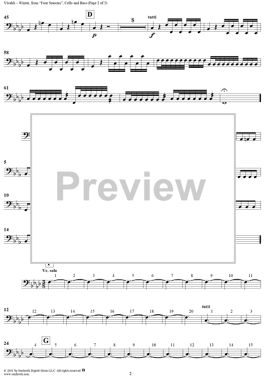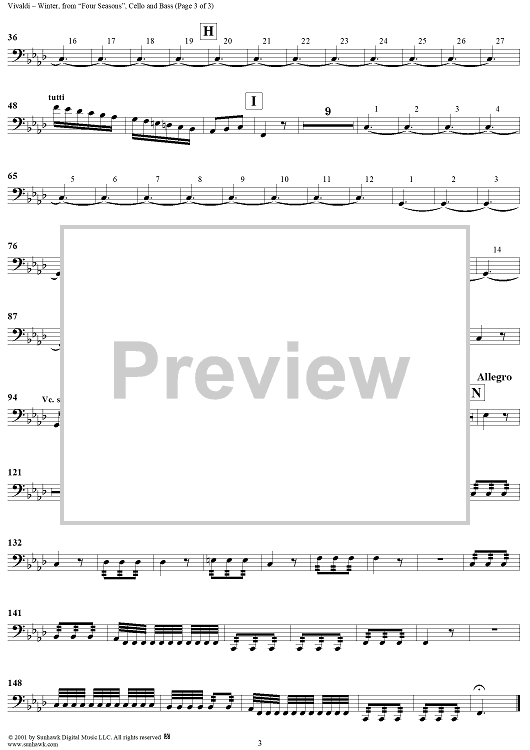 Digital Sheet Music for The Four Seasons, No. 4: Winter - Cello/Bass by Antonio Vivaldi scored for Violin and String Orchestra; id:203837