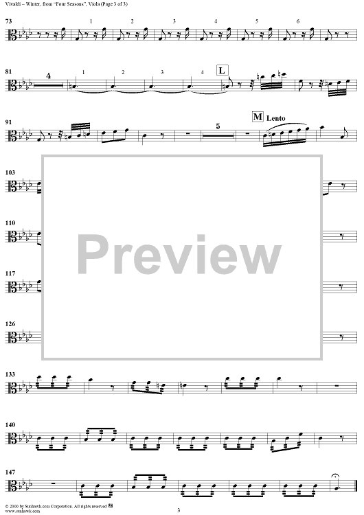 "The Four Seasons, No. 4: Winter - Viola" Sheet Music by Antonio Vivaldi