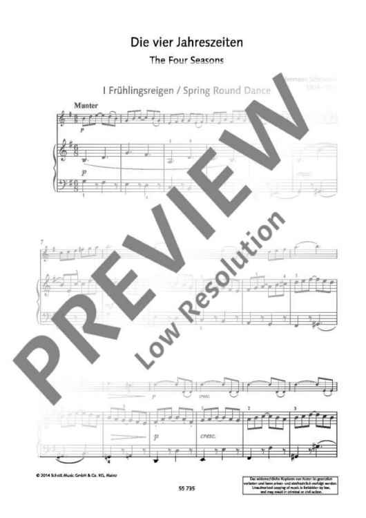 Digital Sheet Music for The Four Seasons by Hermann Schroeder scored for Violin And Piano; id:485453