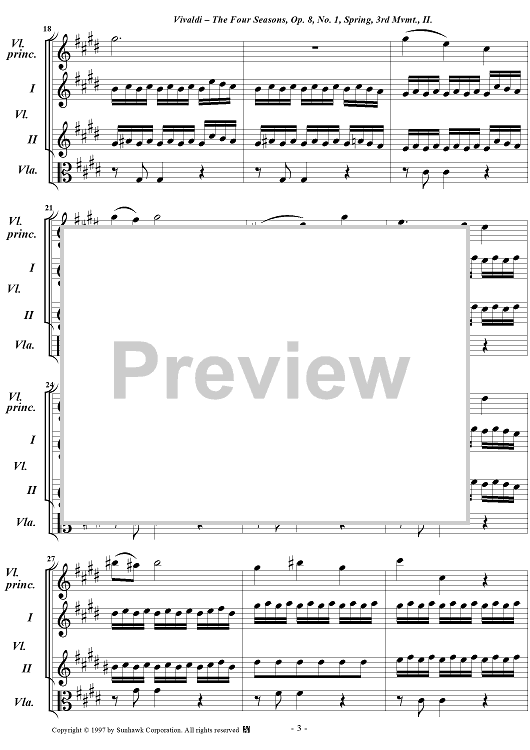 Digital Sheet Music for The Four Seasons: Spring, Movement 2 - Score by Antonio Vivaldi scored for Violin and String Orchestra; id:94683