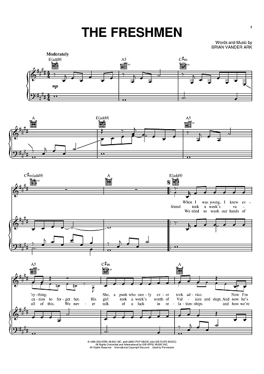 Digital Sheet Music for The Freshmen by Brian Vander Ark, The Verve Pipe scored for Piano/Vocal/Chords; id:367997