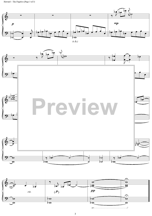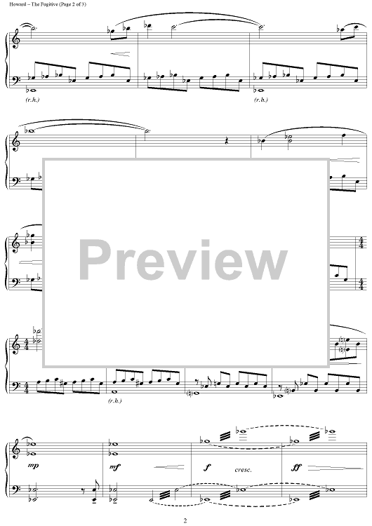 Digital Sheet Music for The Fugitive (Main Theme) by James Newton Howard scored for Piano Solo; id:113872