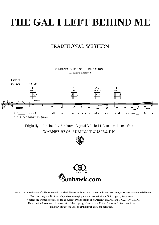 Digital Sheet Music for The Gal I Left Behind Me by Traditional scored for Lead Sheet; id:292657