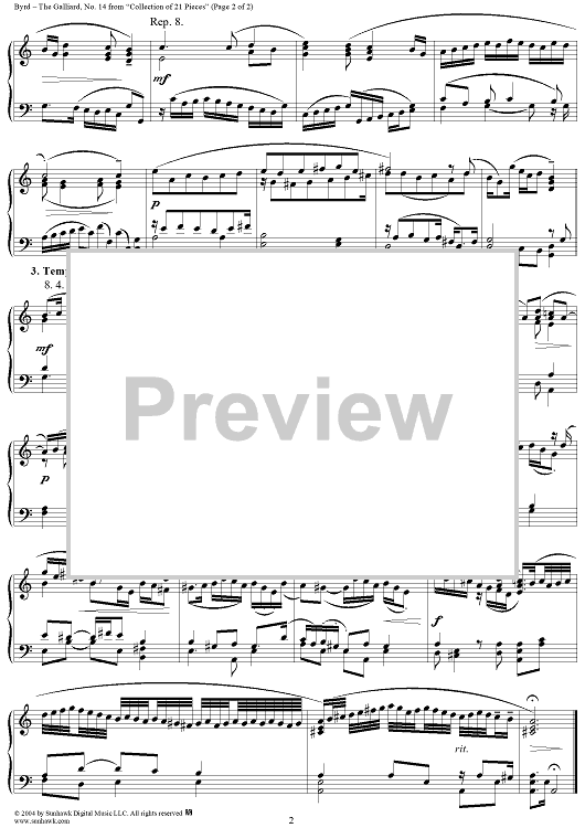 Digital Sheet Music for The Galliard by William Byrd scored for Organ Solo; id:303343