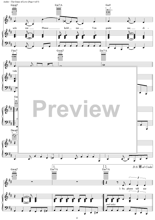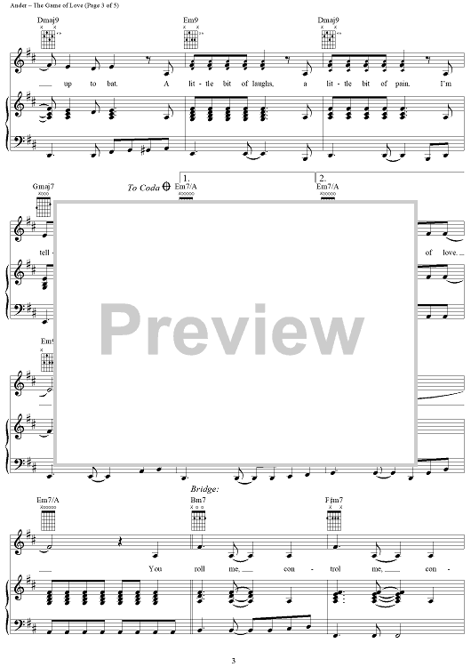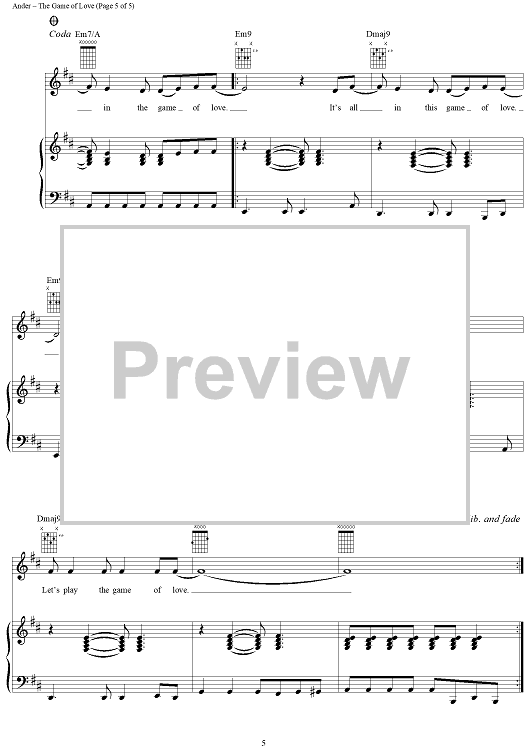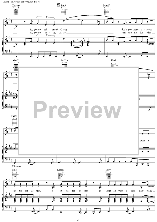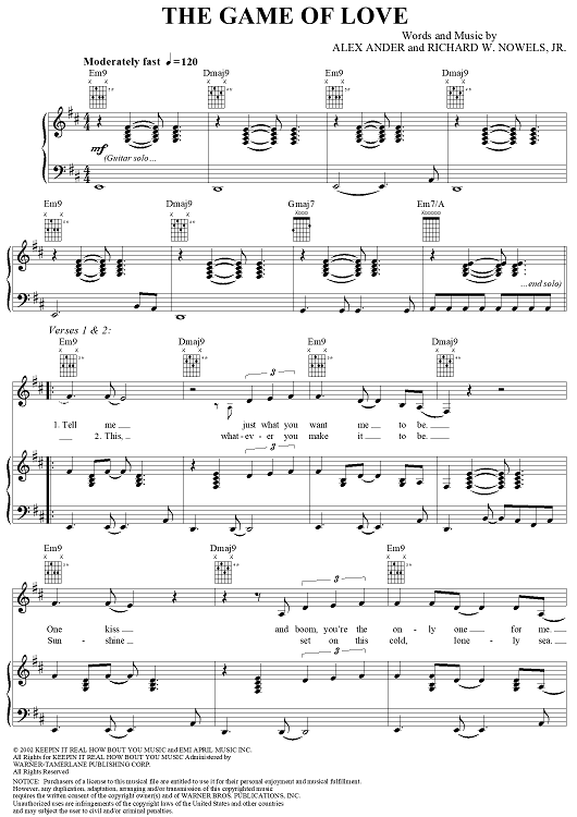 Digital Sheet Music for The Game of Love by Rick Nowels, Michelle Branch, Alex Ander scored for Piano/Vocal/Chords; id:293360