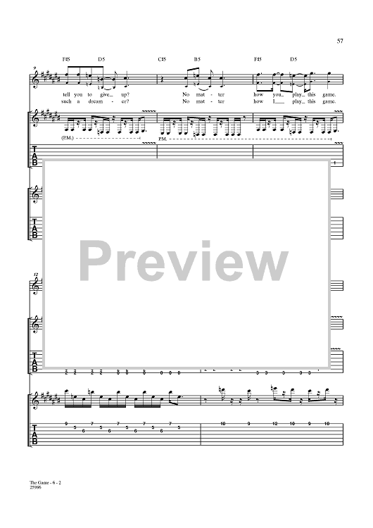 Digital Sheet Music for The Game by Lacuna Coil, Cristiano Migliore, Andrea Ferro, Cristina Scabbia, Marco Biazzi, Marco Coti Zelati, Cristiano Mozzati scored for Guitar Tab/Vocal; id:360005