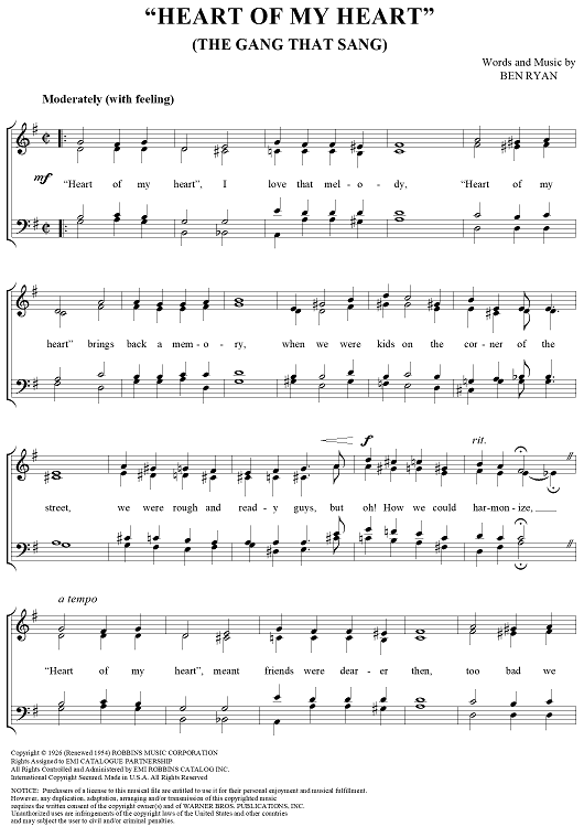 Digital Sheet Music for The Gang That Sang "Heart of My Heart" by Ben Ryan scored for Barbershop Quartet; id:255880