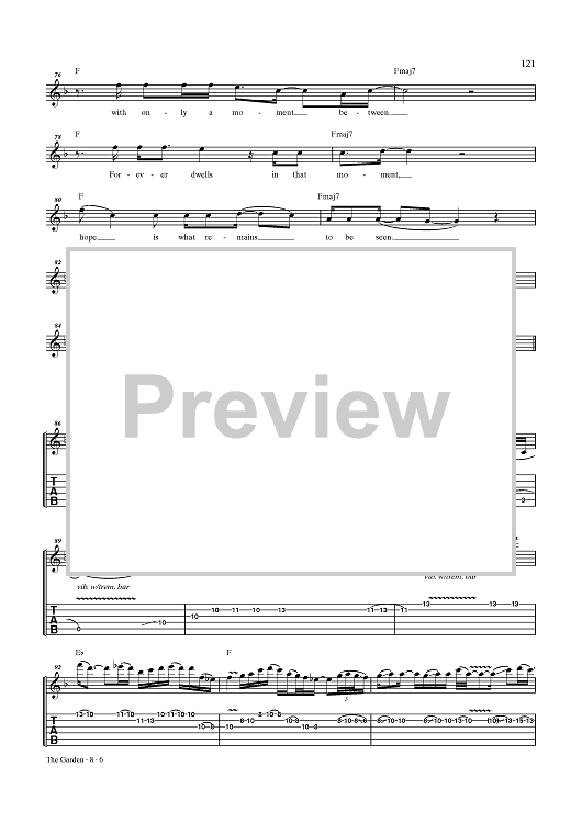 Digital Sheet Music for The Garden by Rush, Geddy Lee, Alex Lifeson, Neil Peart scored for Guitar Tab/Vocal; id:432895