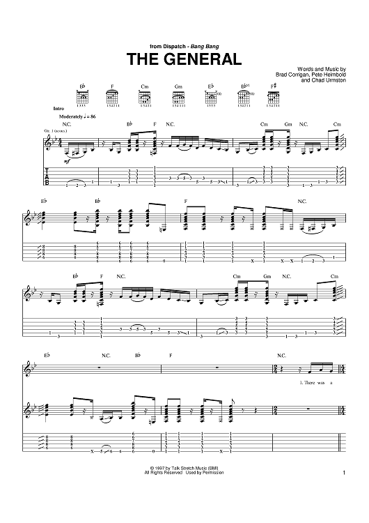 Digital Sheet Music for The General by Brad Corrigan, Dispatch, Pete Francis Heimbold, Chad Urmston scored for Guitar Tab; id:372699