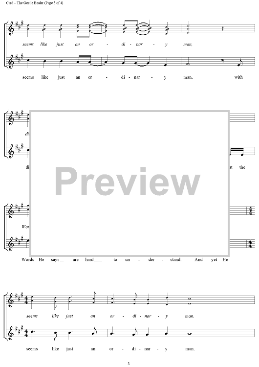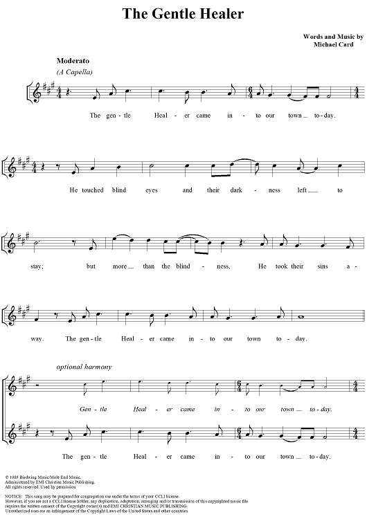 Digital Sheet Music for The Gentle Healer by Michael Card scored for Solo a cappella; id:119207