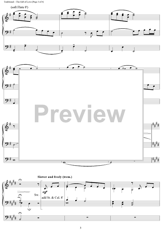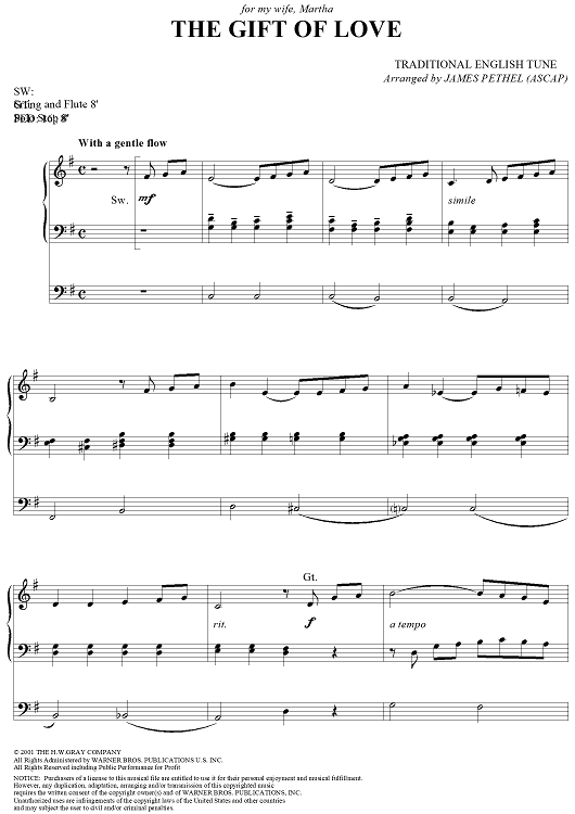 Digital Sheet Music for The Gift of Love by James Pethel, Traditional scored for Organ Solo; id:292854