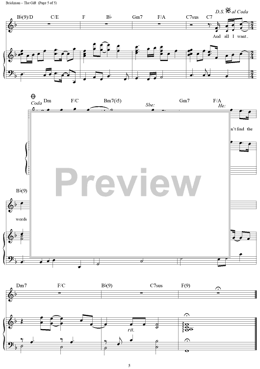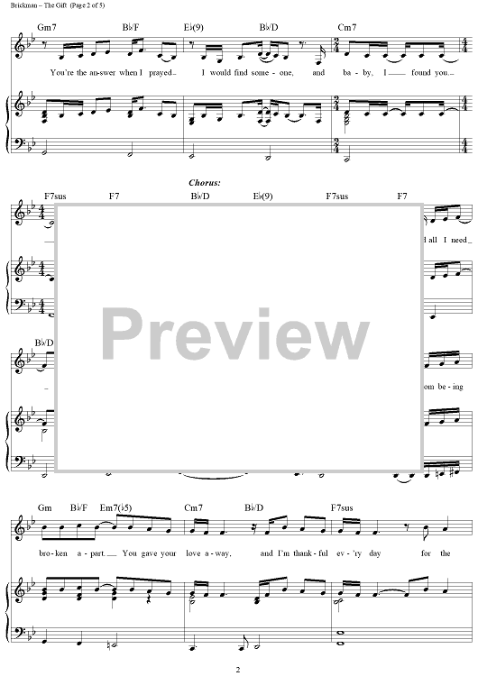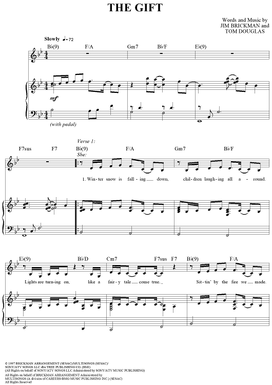 Digital Sheet Music for The Gift by Jim Brickman, Susan Ashton, Collin Raye, Tom Douglas scored for Piano/Vocal/Chords; id:109783