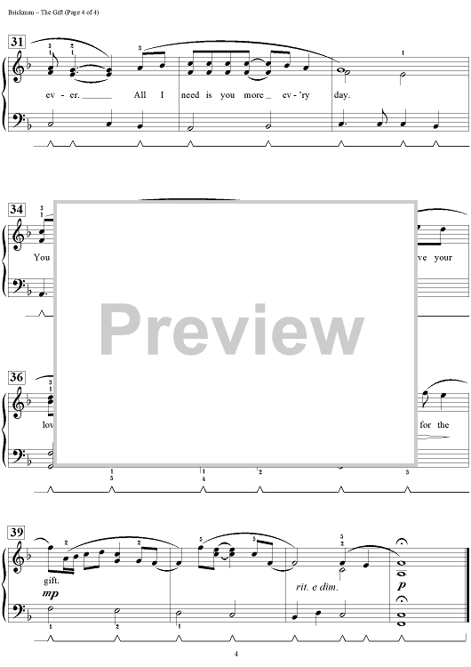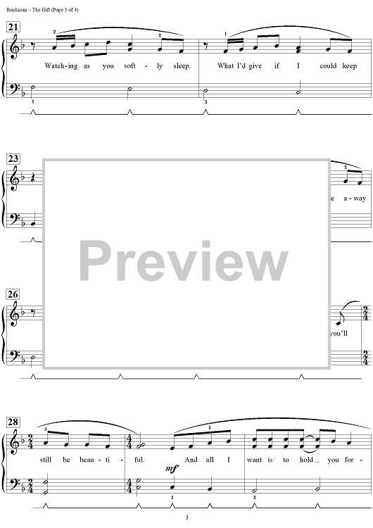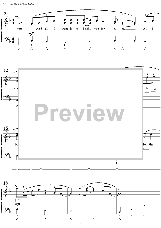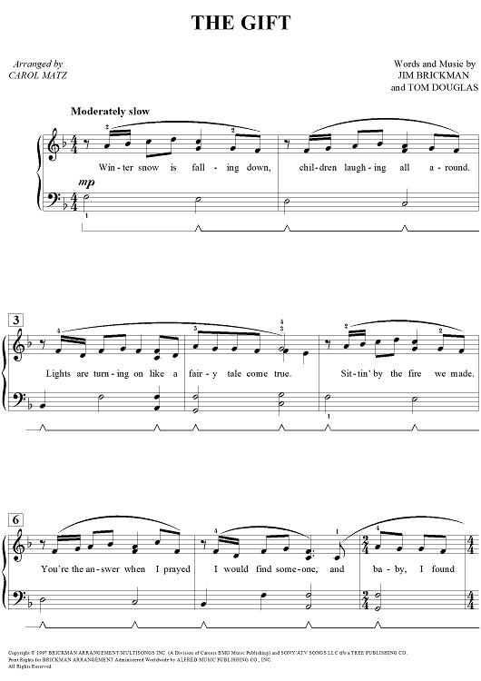 Digital Sheet Music for The Gift by Jim Brickman, Tom Douglas, Carol Matz scored for Piano; id:453865