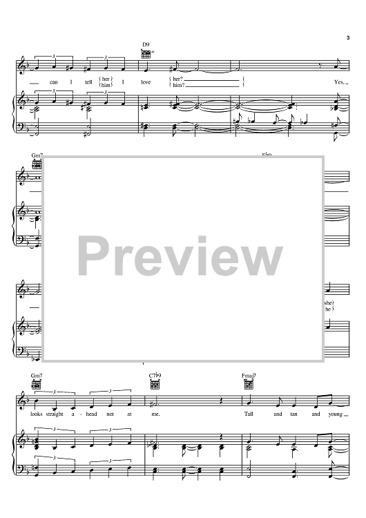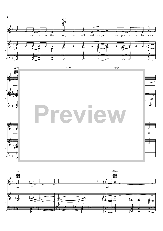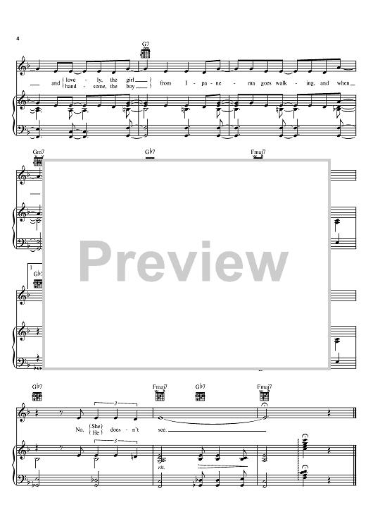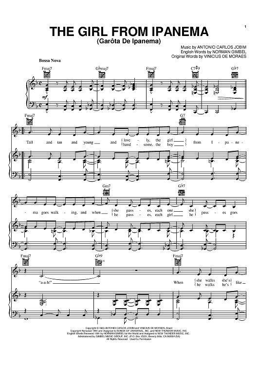 Digital Sheet Music for The Girl From Ipanema (Garota De Ipanema) by Norman Gimbel, Ella Fitzgerald, Antonio Carlos Jobim, Vinicius de Moraes, Astrud Gilberto, Stan Getz scored for Piano/Vocal/Chords; id:373297