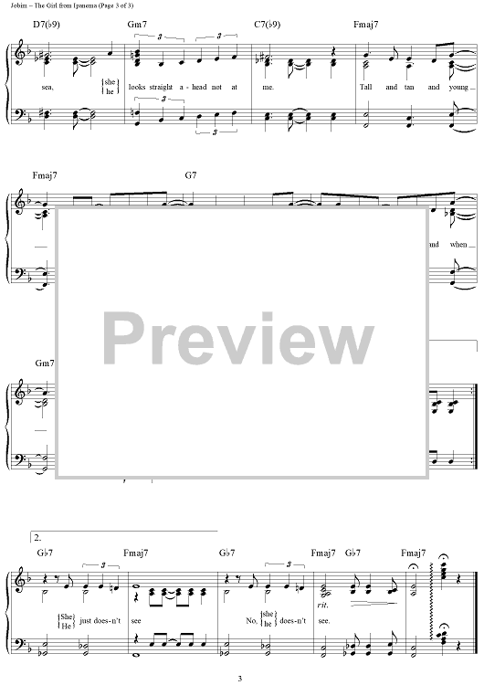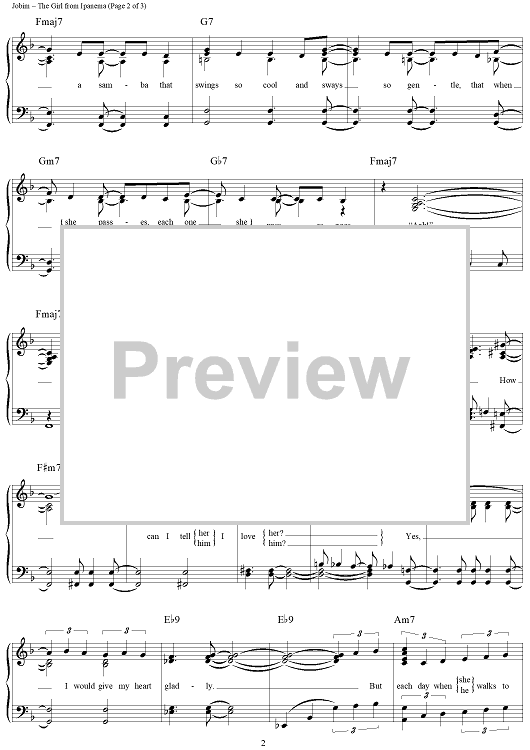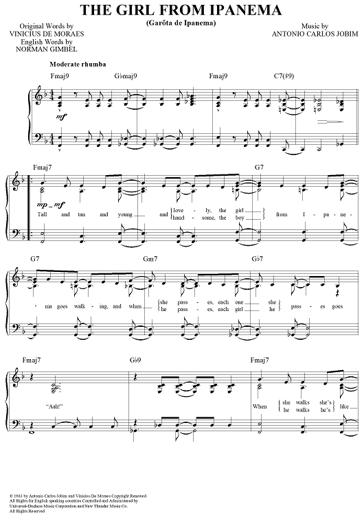 Digital Sheet Music for The Girl from Ipanema by Antonio Carlos Jobim, Vinicius de Moraes scored for Piano/Vocal/Chords; id:289236