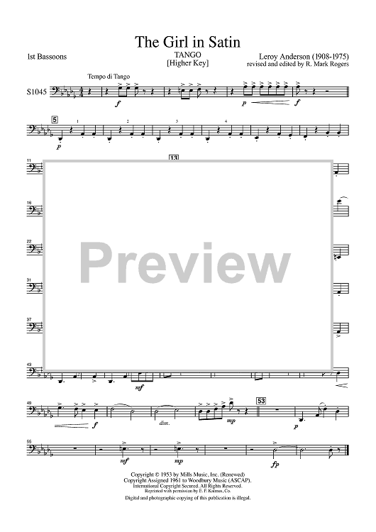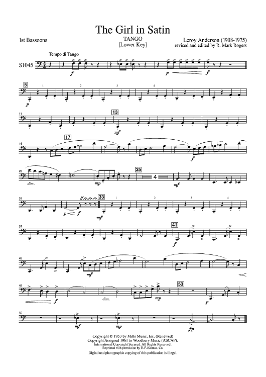 Digital Sheet Music for The Girl in Satin - Bassoon 1 by Leroy Anderson scored for Concert Band; id:502211