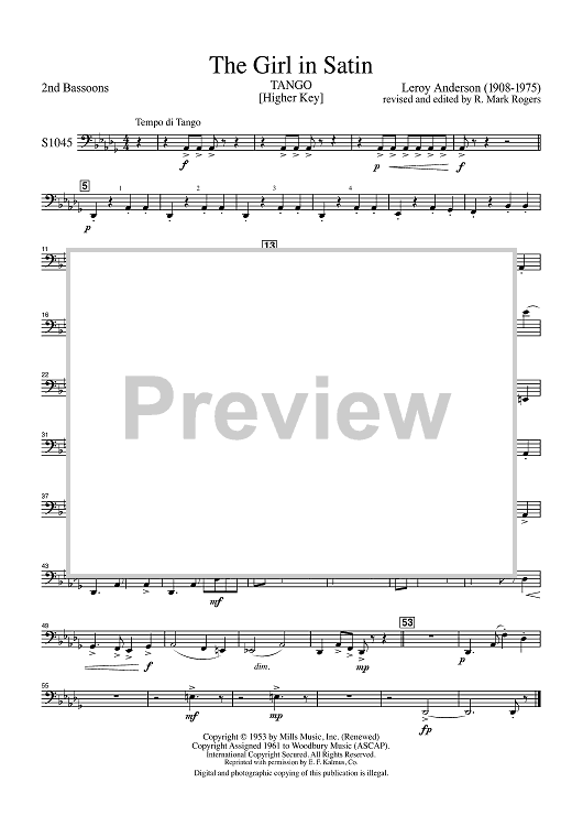 Digital Sheet Music for The Girl in Satin - Bassoon 2 by Leroy Anderson scored for Concert Band; id:502212