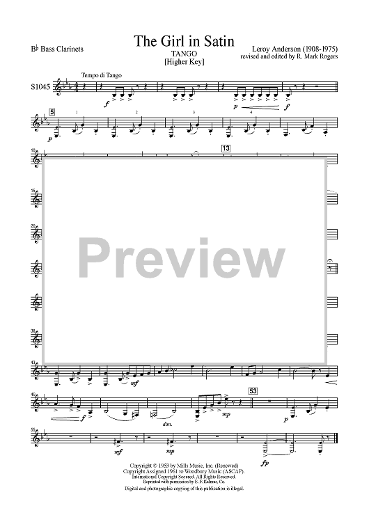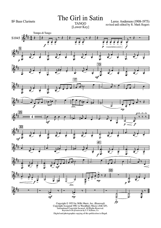 Digital Sheet Music for The Girl in Satin - Bb Bass Clarinet by Leroy Anderson scored for Concert Band; id:502208