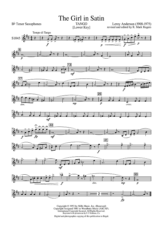 "The Girl in Satin - Bb Tenor Sax" Sheet Music by Leroy Anderson