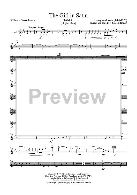 Digital Sheet Music for The Girl in Satin - Bb Tenor Sax by Leroy Anderson scored for Concert Band; id:502215