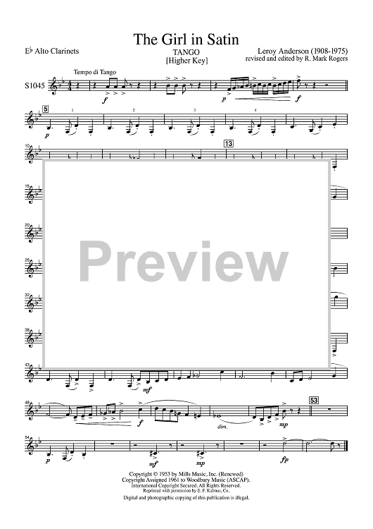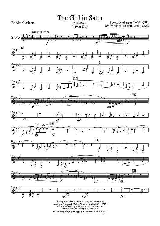 Digital Sheet Music for The Girl in Satin - Eb Alto Clarinet by Leroy Anderson scored for Concert Band; id:502207