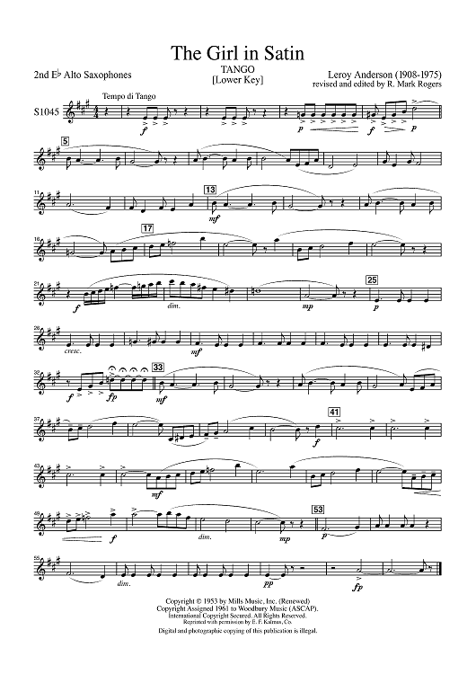 Digital Sheet Music for The Girl in Satin - Eb Alto Sax 2 by Leroy Anderson scored for Concert Band; id:502214