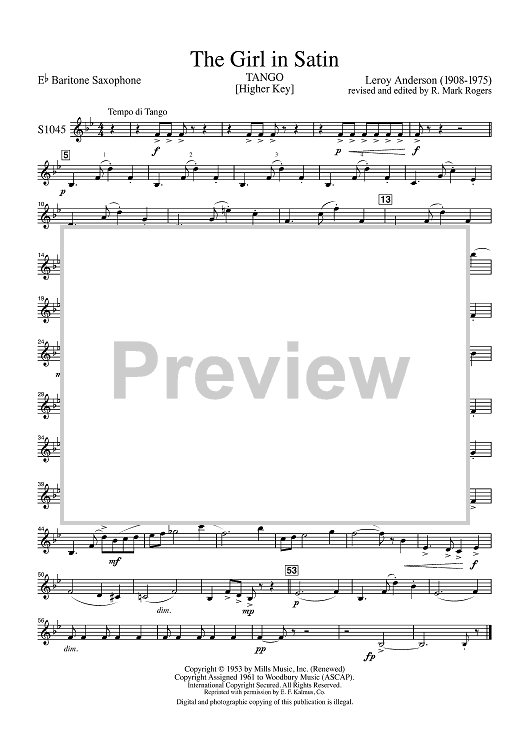 Digital Sheet Music for The Girl in Satin - Eb Baritone Sax by Leroy Anderson scored for Concert Band; id:502216
