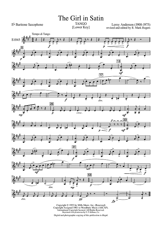 "The Girl in Satin - Eb Baritone Sax" Sheet Music by Leroy Anderson