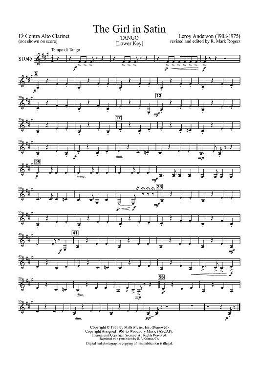 Digital Sheet Music for The Girl in Satin - Eb Contra Alto Clarinet by Leroy Anderson scored for Concert Band; id:502209