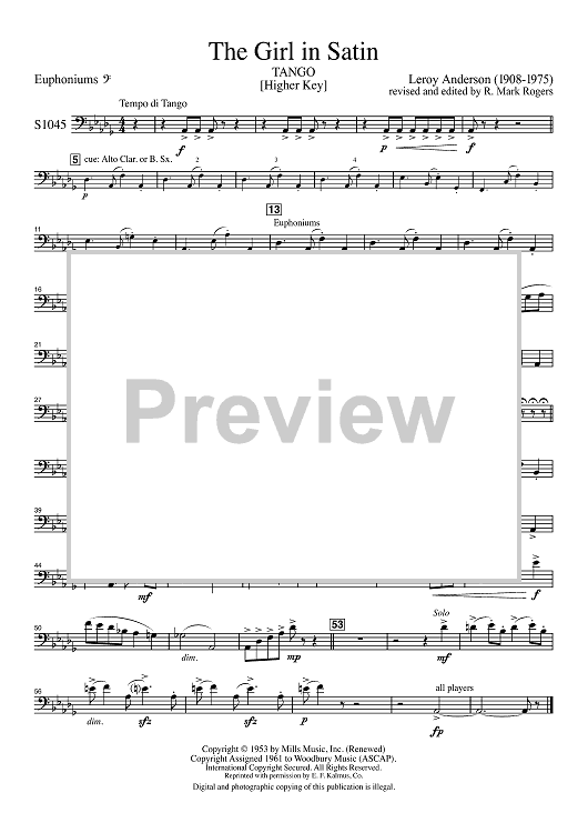 Digital Sheet Music for The Girl in Satin - Euphonium BC by Leroy Anderson scored for Concert Band; id:502230